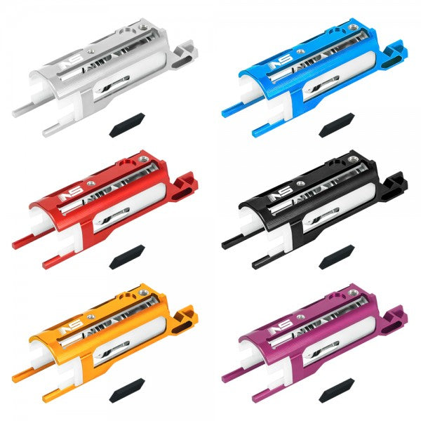 It is designed with a plastic inside to reduce wear on the nozzle. And there is a plastic insert with the appropriate angle so the hammer never gets caught in the BBU.