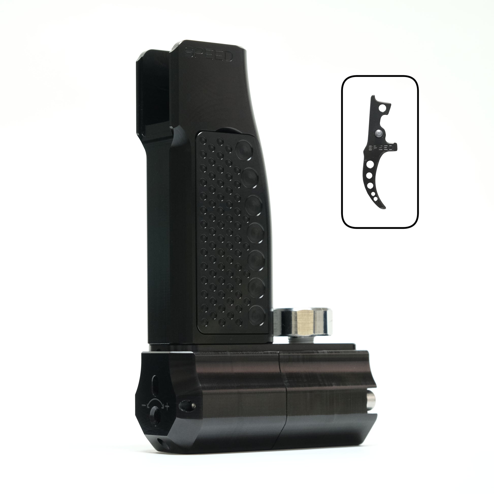 A unique air pressure regulator mounted directly on the gun – the HPA Ultra Regulator combines extreme performance with a highly versatile design. SPEED Airsoft has been developing popular regulators in the airsoft industry since 2015, starting with the HPA Pro Regulator, which impresses with an innovative on/off air release button, extremely fast response times, and an iconic design.
